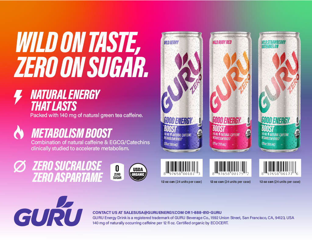 WORLDS FIRST NATURAL ENERGY DRINK! Guru believes energy shouldn’t come at the expense of health. Which is why we are on a mission to clean up the energy drink industry, one can at a time.